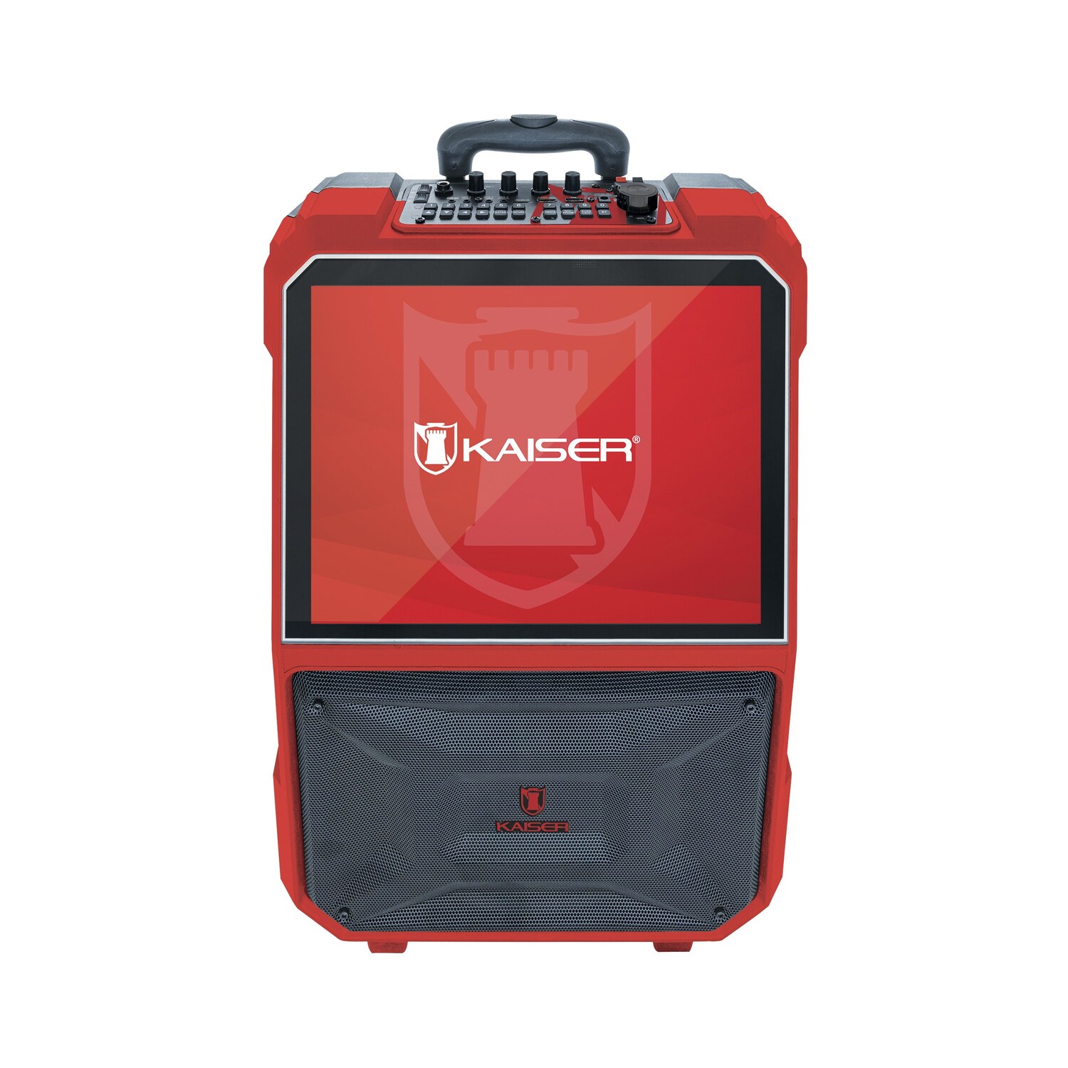 Pantalla touch 15" Conexión WiFi Bluetooth® con alcance de hasta 10 m Potencia de audio 40 W RMS Aplicaciones precargadas: Youtube®_ Netflix®_ Chrome® y Google Play® Terminales para batería externa Incluye adaptador para cargar la batería Perillas independientes de volumen general_ graves_ agudos_ micrófono y eco Funciones: visualizar fotos_ reproducir audio y video_ grabar audio y prioridad de audio del micrófono Controles de reproducción Impedancia 4 ohm Entradas