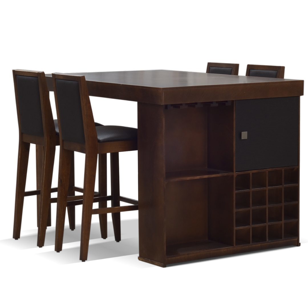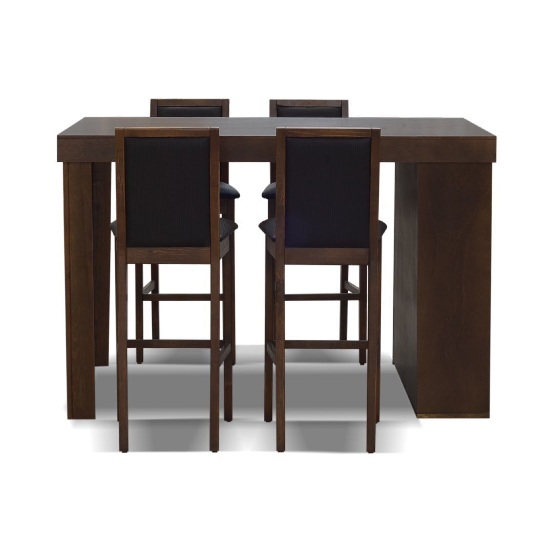 Barra Montana fabricada en pino y MDF enchapado okume. cuenta con 4 bancos. color nogal. acabado poliuretano medidas de barras: alto exterior .99 mts. largo exterior 1.49 mts. ancho exterior 1 mts. pesos cubierta 23.8 kg. peso pedestal 29.6 kg medidas banco: alto exterior 1.04 mts. largo exterior .46 mts ancho exterior .39 mts. peso 7.6 kg