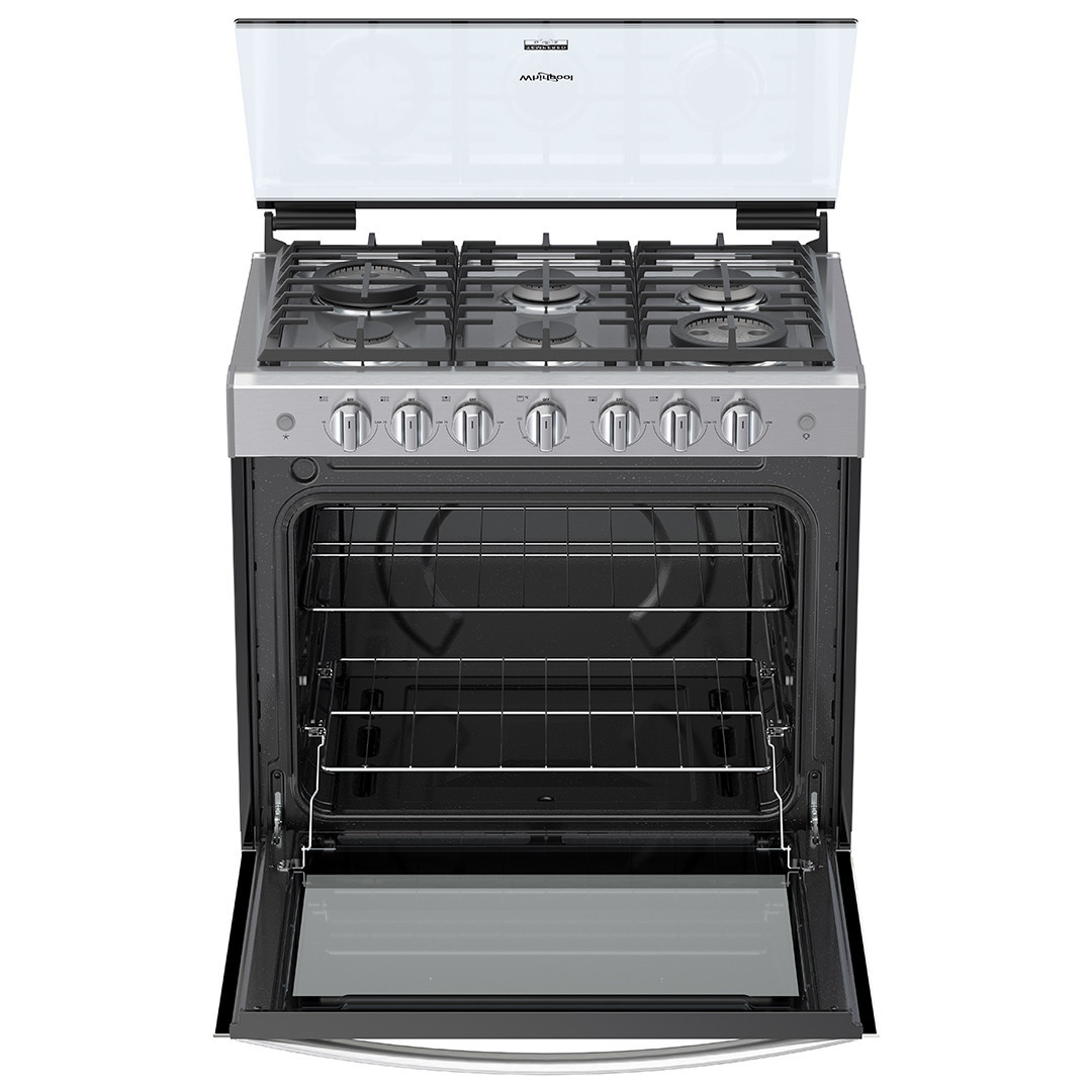 Cuenta con cubierta y panel frontal de Acero Inoxidable_ parrillas de hierro fundido_ comal teflonizado_ luz en el horno y parrilla autodeslizable en el horno más una parrilla sencilla. Además_ obtén el cocinado perfecto con sus 4 quemadores Súper y 2 Xpert Flamma.