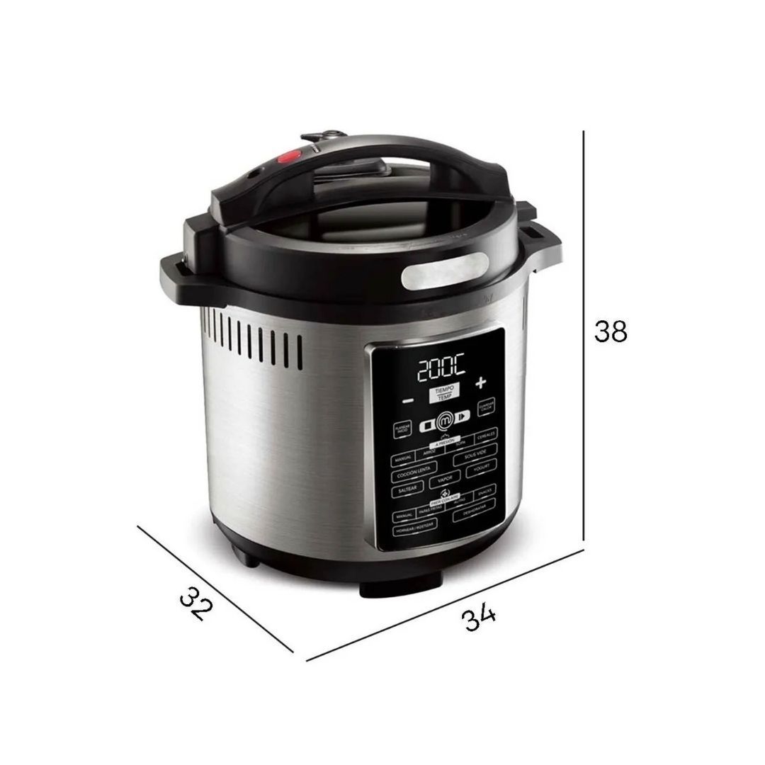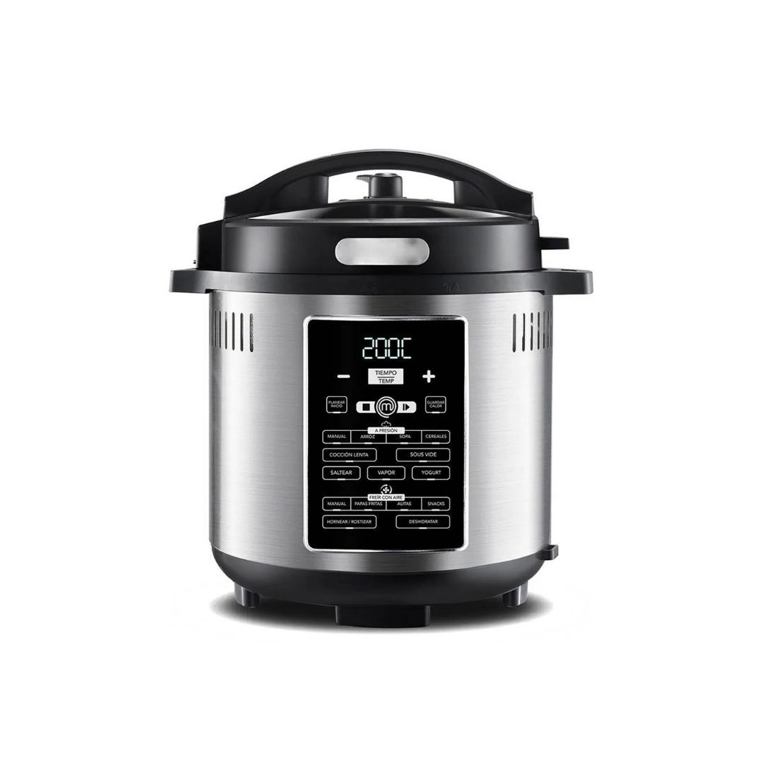 Un verdadero todo en uno_ esta maravilla de la cocina te hará no desear otro electrodoméstico ya que la Olla Multifunción + Freidora De Aire de MasterChef® MK-AFP-6SV sustituye más de 10 electrodomésticos. Cuenta con un panel digital con más de 10 funciones como freír con aire_ cocinar a presión_ deshidratar_ hornear y mucho más. Cocina hasta un 70% más rápido que una olla de presión convencional. Su tecnología SMART-VENT innova la circulación del aire multidireccional para resultados uniformes_ perfectos y mejores que una freidora de aire común. No tienes que cambiar la tapa para pasar de una función a otra_ házlo súper fácil gracias a la función Dual-Cook_ y su mecanismo avanzado de seguridad te garantizará una mejor experiencia en la cocina.