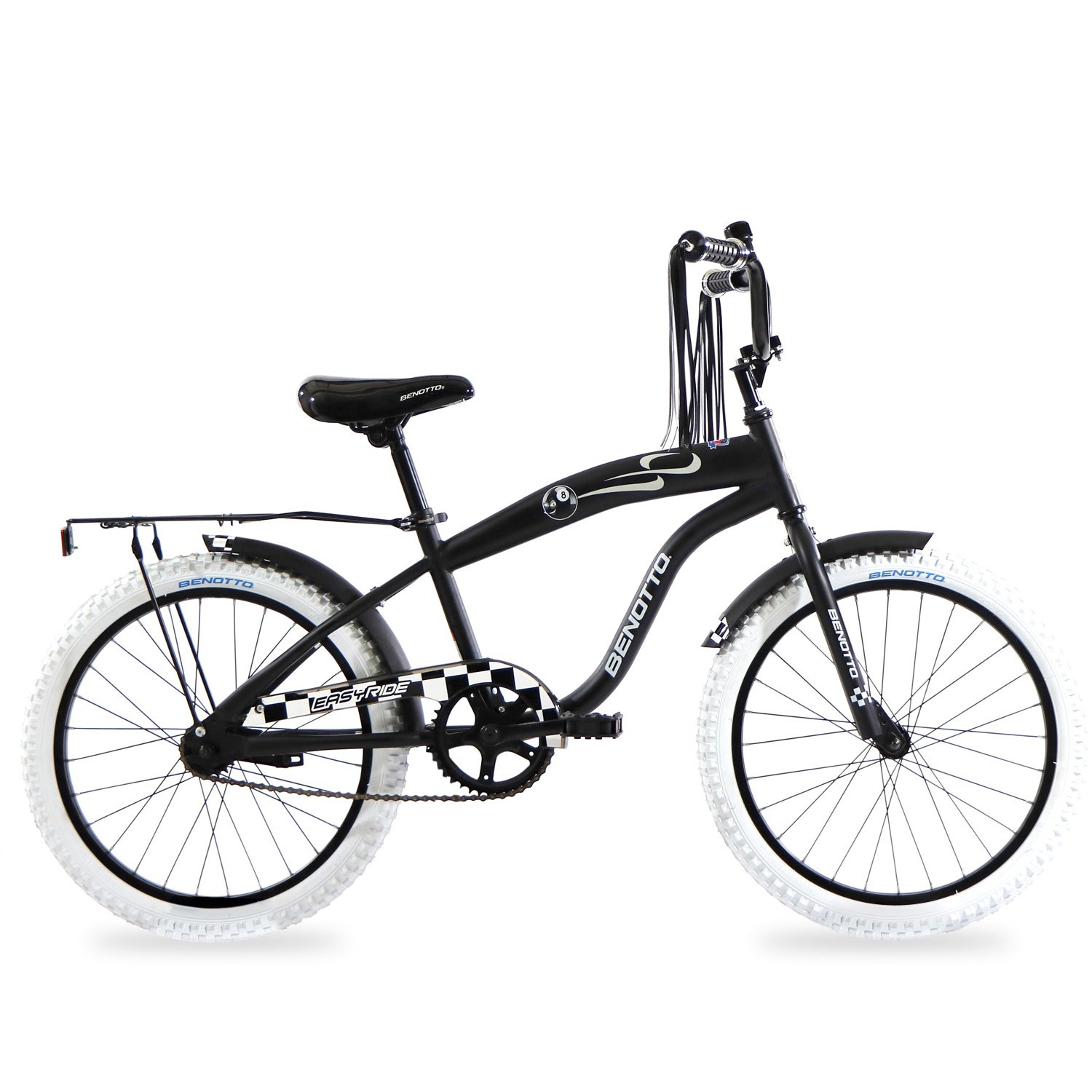 Disfruta de una tarde soleada con una bicicleta Benotto City Easy Ride R20_ hecha con un cuadro de acero hiten de color negro: integra frenos contrapedal_ la l llanta 20X2.4 con rines de aluminio y rodada de 20".