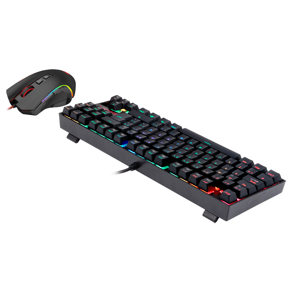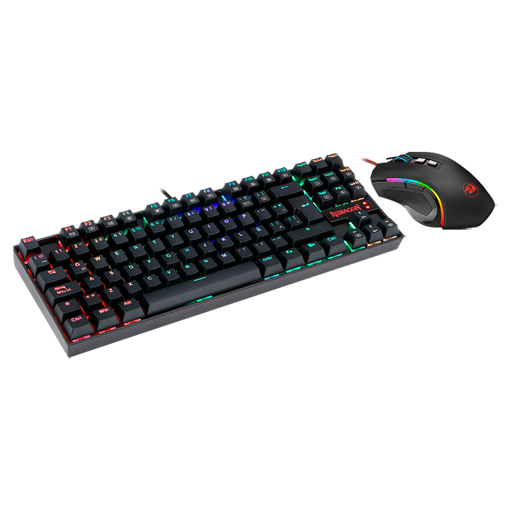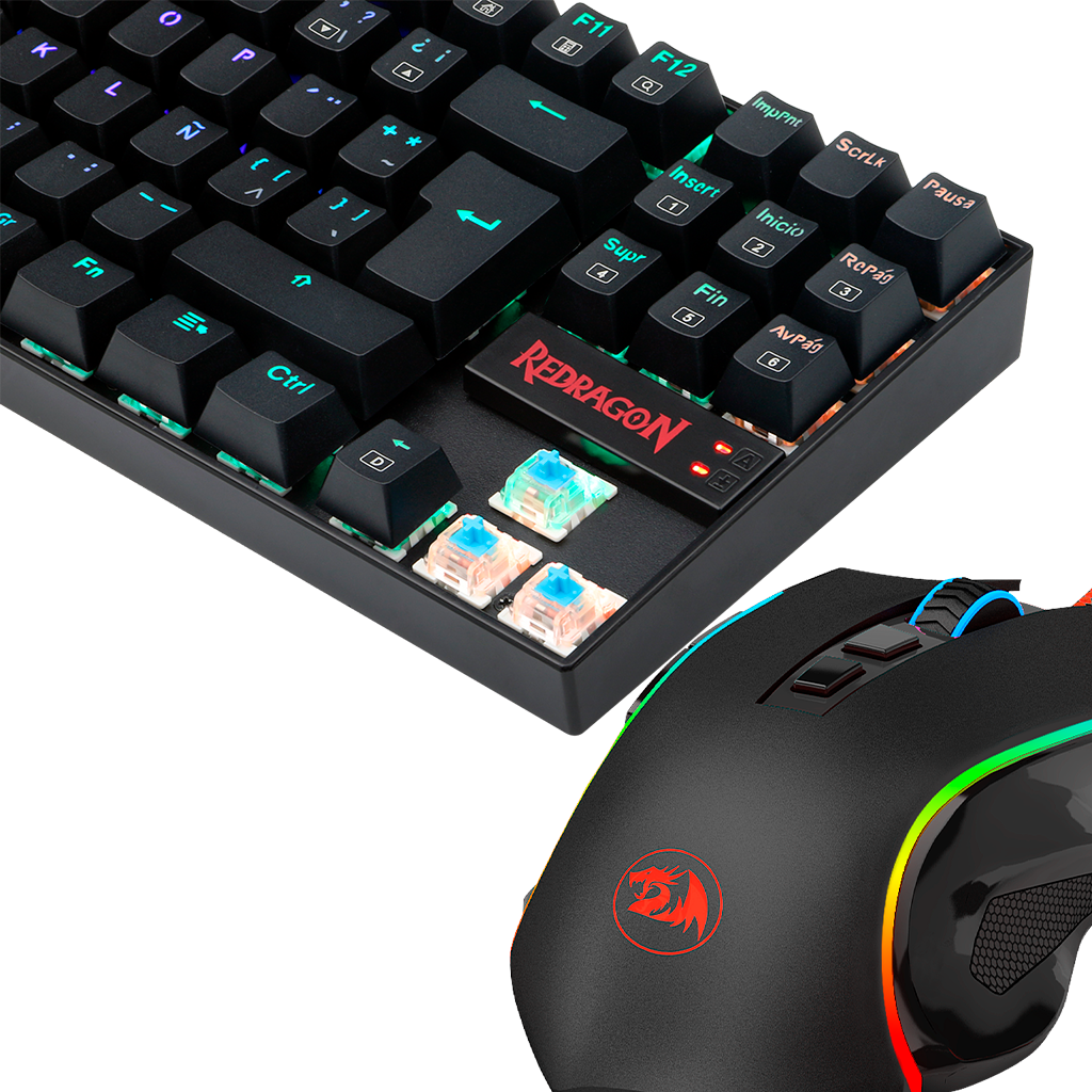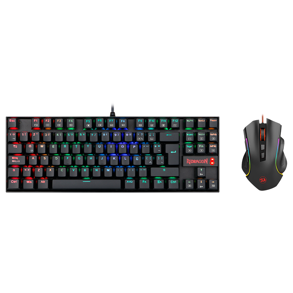 El kit nos trae el ya conocido Kumara RGB_ un teclado TKL de diseño compacto; acompañado del mouse Griffin_ con su diseño ergonómico_ nos permitirá mantener un setup espacioso y cómodo para nuestras prolongadas sesiones de nuestros juegos favoritos.