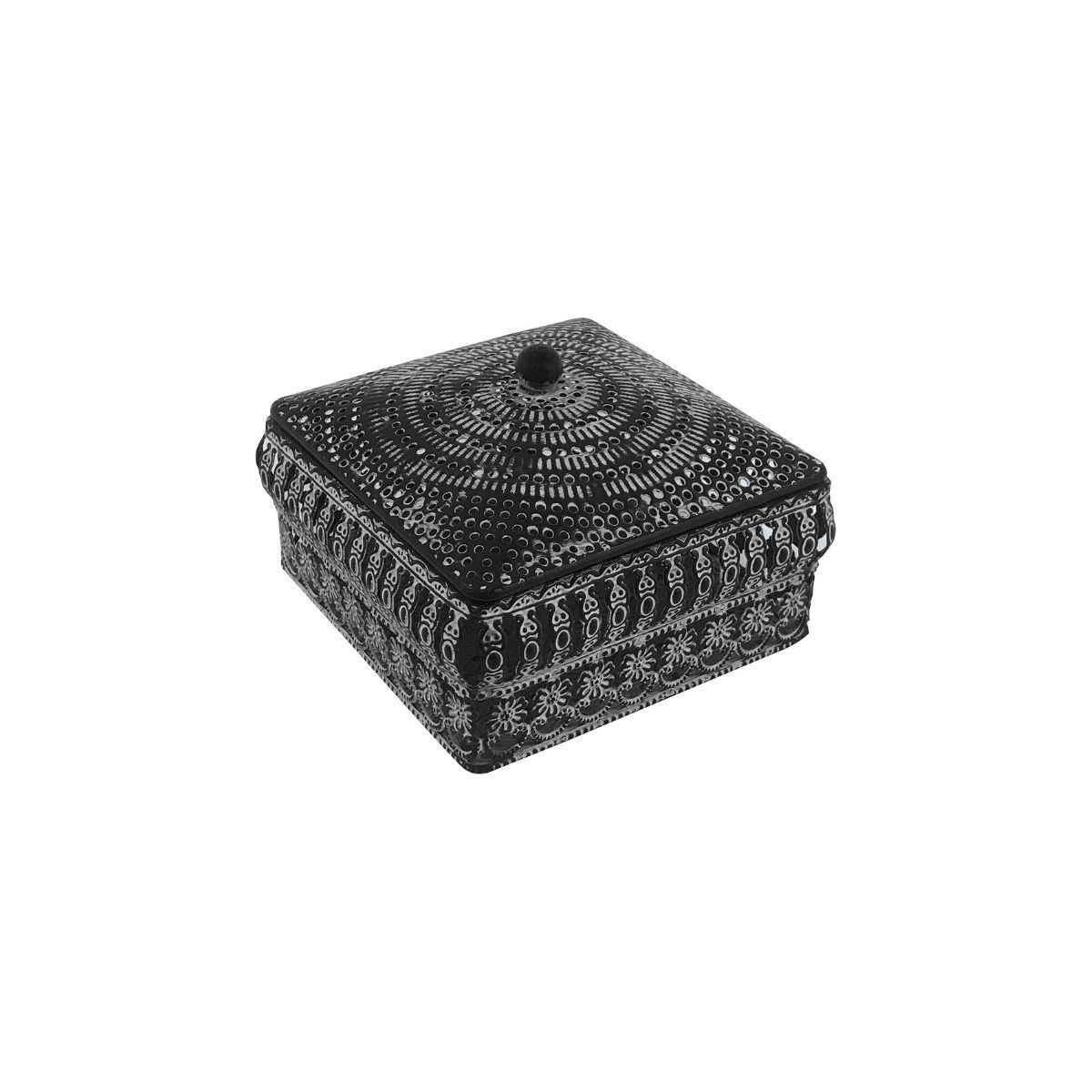 Caja Mumbai con detalles blancos y elaborada de metal donde podrás colocar tus joyas para mantenerlas seguras_ agregando un toque elegante a tu habitación.¡A un clic de ti!