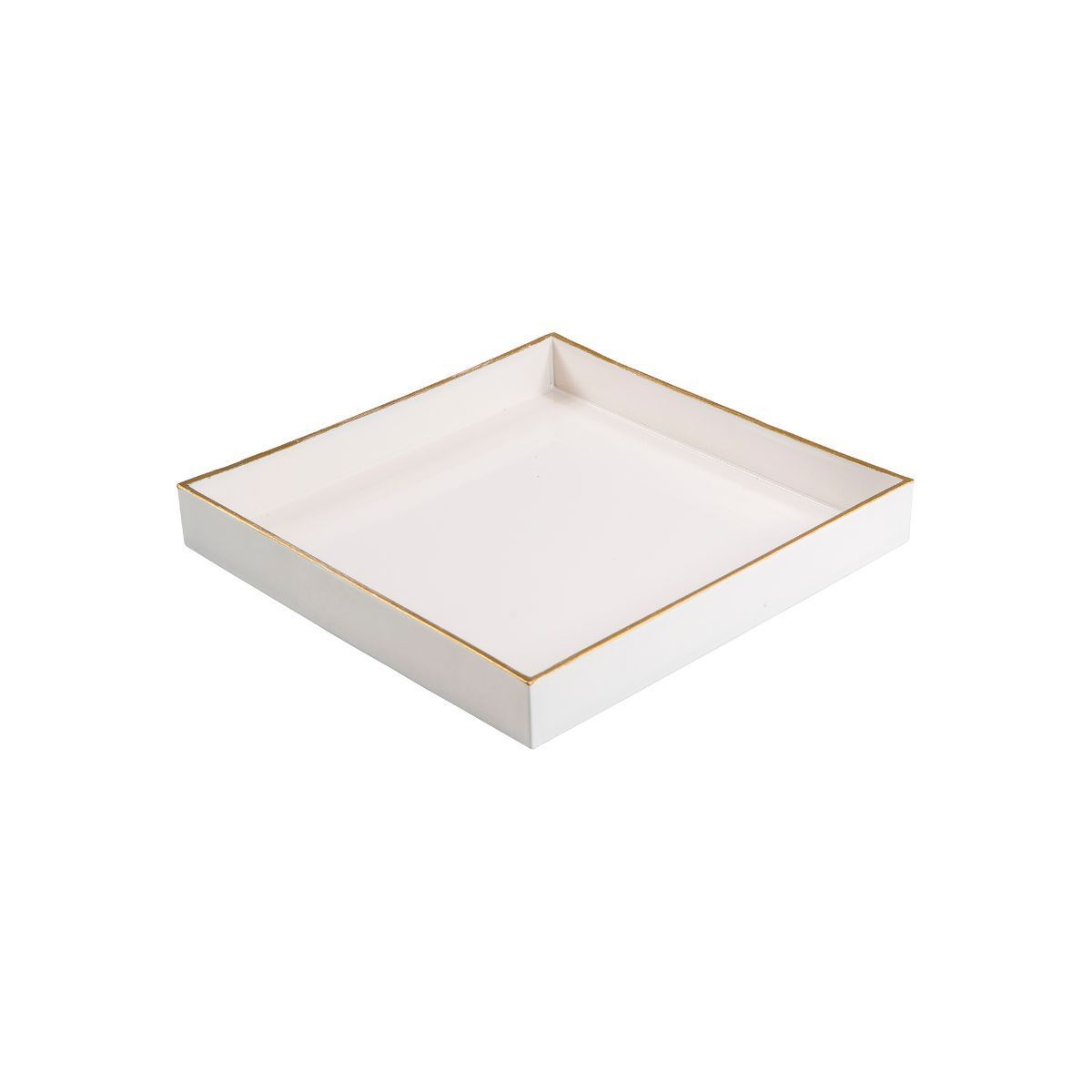 La charola mimosa en color blanco con una superficie de brilloso terminado y en la orilla una fina línea dorada es una tendencia clásica de decoración para cualquier espacio de tu hogar.
