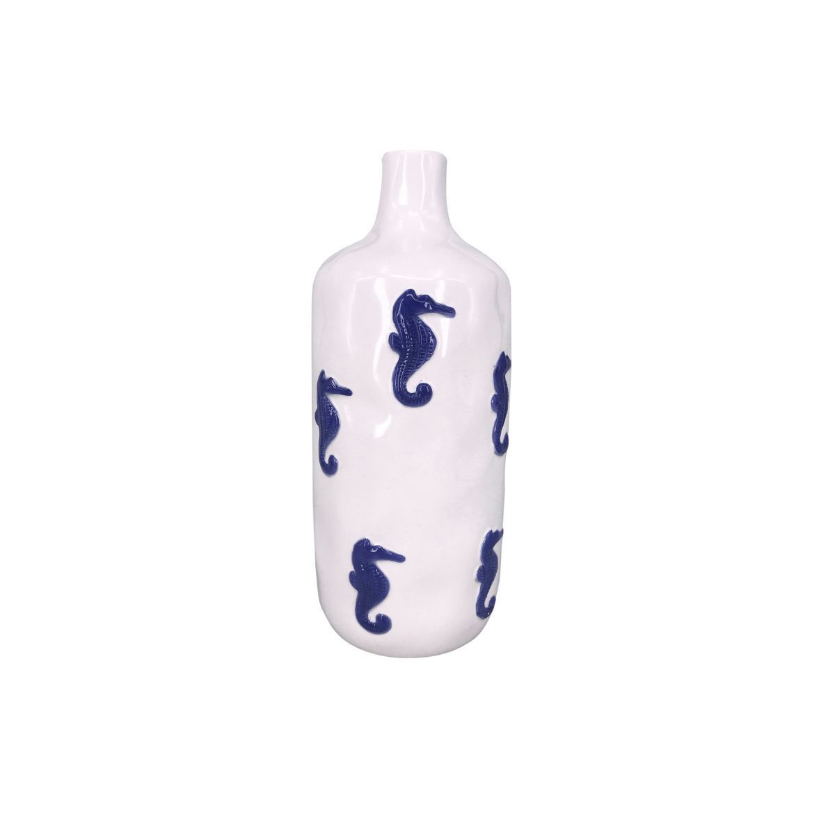 El jarrón hippocampus de cerámica con su color blanco le da luminosidad y los detalles de caballitos de mar en azul lo hacen dinámico y divertido.¡A un clic de ti!