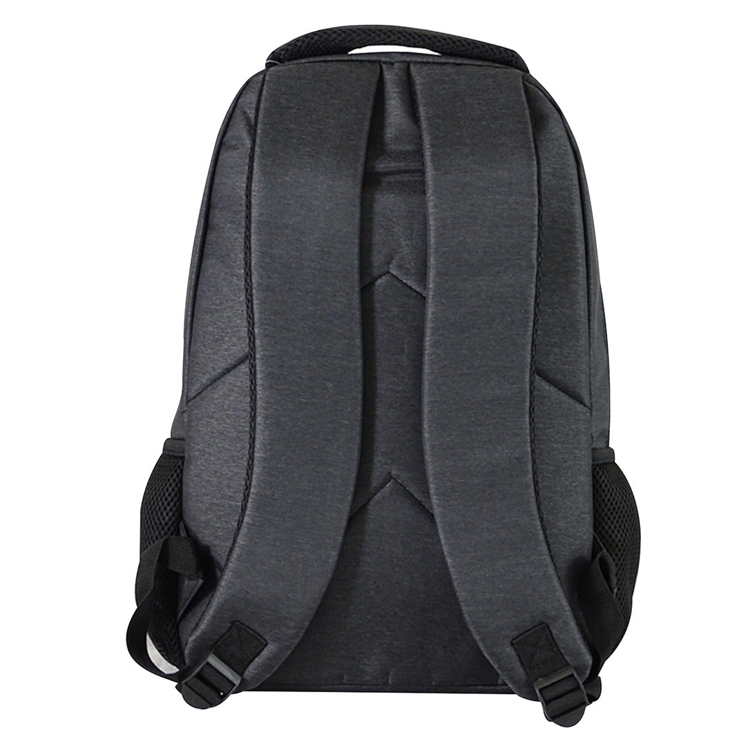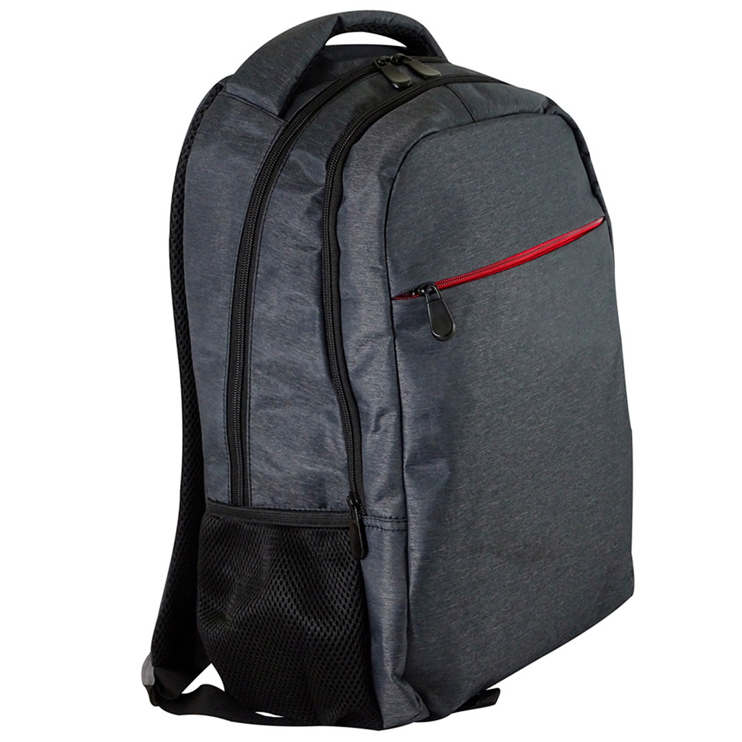 Mochila para laptop tipo back pack_ dos amplios compartimientos con cierre_ organizador interno para laptop de hasta 15”. Dos bolsa al frente con cierre_ dos organizadores laterales de red_ correas ajustables a los hombros y asa de mano.