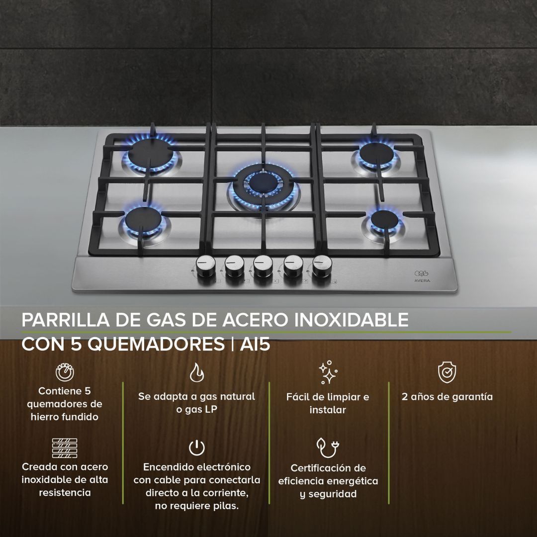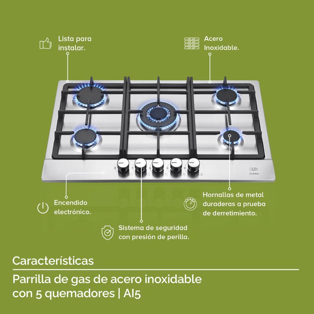 Parrila de Gas 5 Quemadores Acero Inoxidable Avera AI5