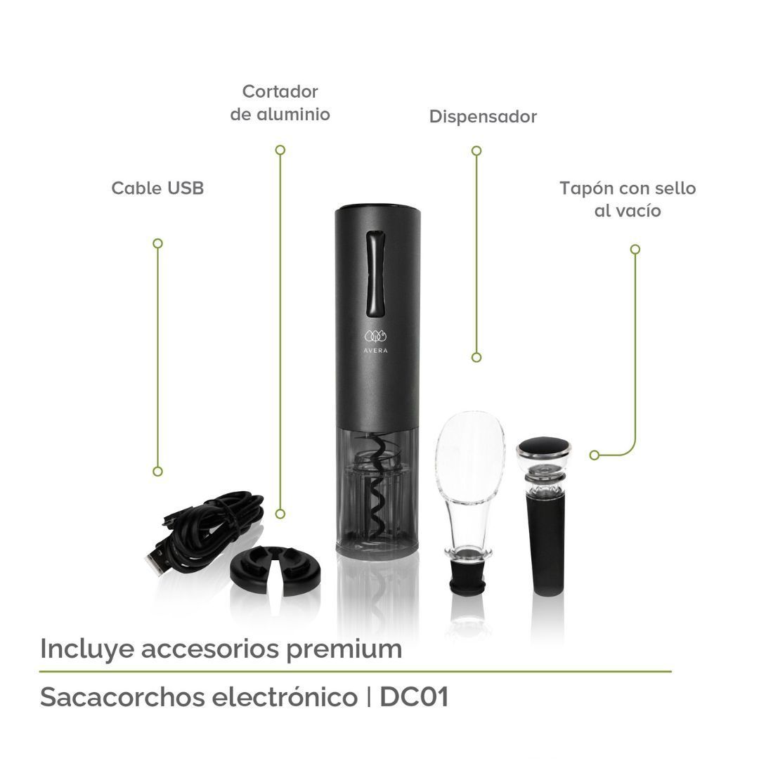Deja de gastar en baterías con este sacacorchos eléctrico con batería NI-HM recargable por USB destapa 30 botellas por carga.