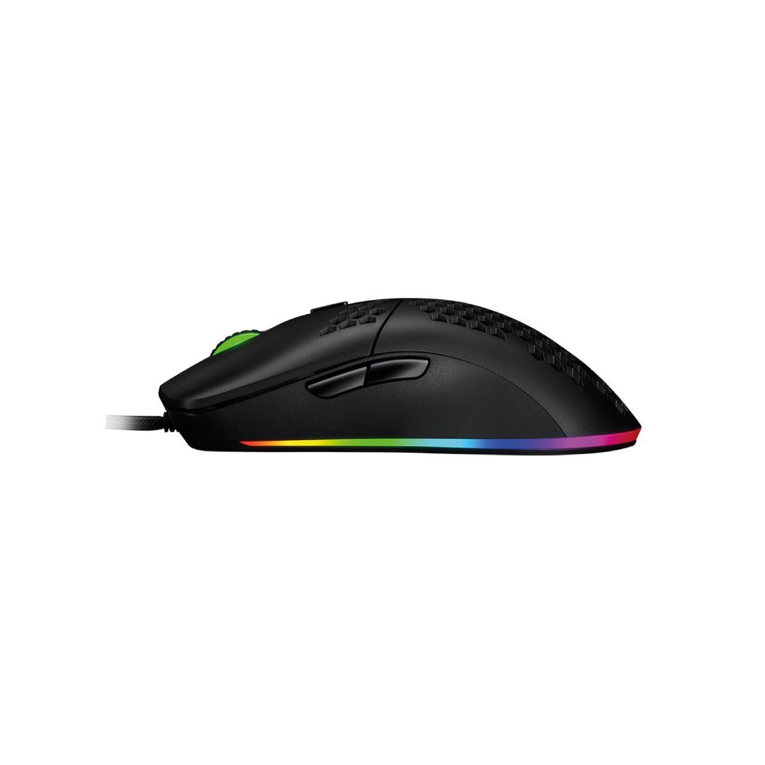 Sensor de alta precisión. Equipado con un sensor Pixart garantiza precisión extrema_ sus 6_200 DPIs nativos y hasta 12_400 DPIs interpolados te dan una ventaja competitiva real en el campo de batalla.
